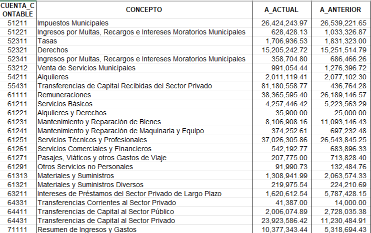 - Estado de Rendimiento Financiero cada institución deberá vaciar la información de este EEFF en un archivo de Excel que es proporcionado por el analista de la CGR, el formato al que se hace mención se muestra a continuación:
