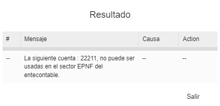 Cuando el usuario reporte que intento cargar un estado financiero bien sea SF o RF y se le presente el siguiente mensaje, deberá notificar al analista de CGR para que se realice el análisis si esta institución puede utilizar esta cuenta contable, de acuerdo al sector que pertenezca y de ser afirmativo el analista de la CGR gestionara para que se realice un documento de alta y asignarle este atributo a esa cuenta contable directamente en el PUCC.