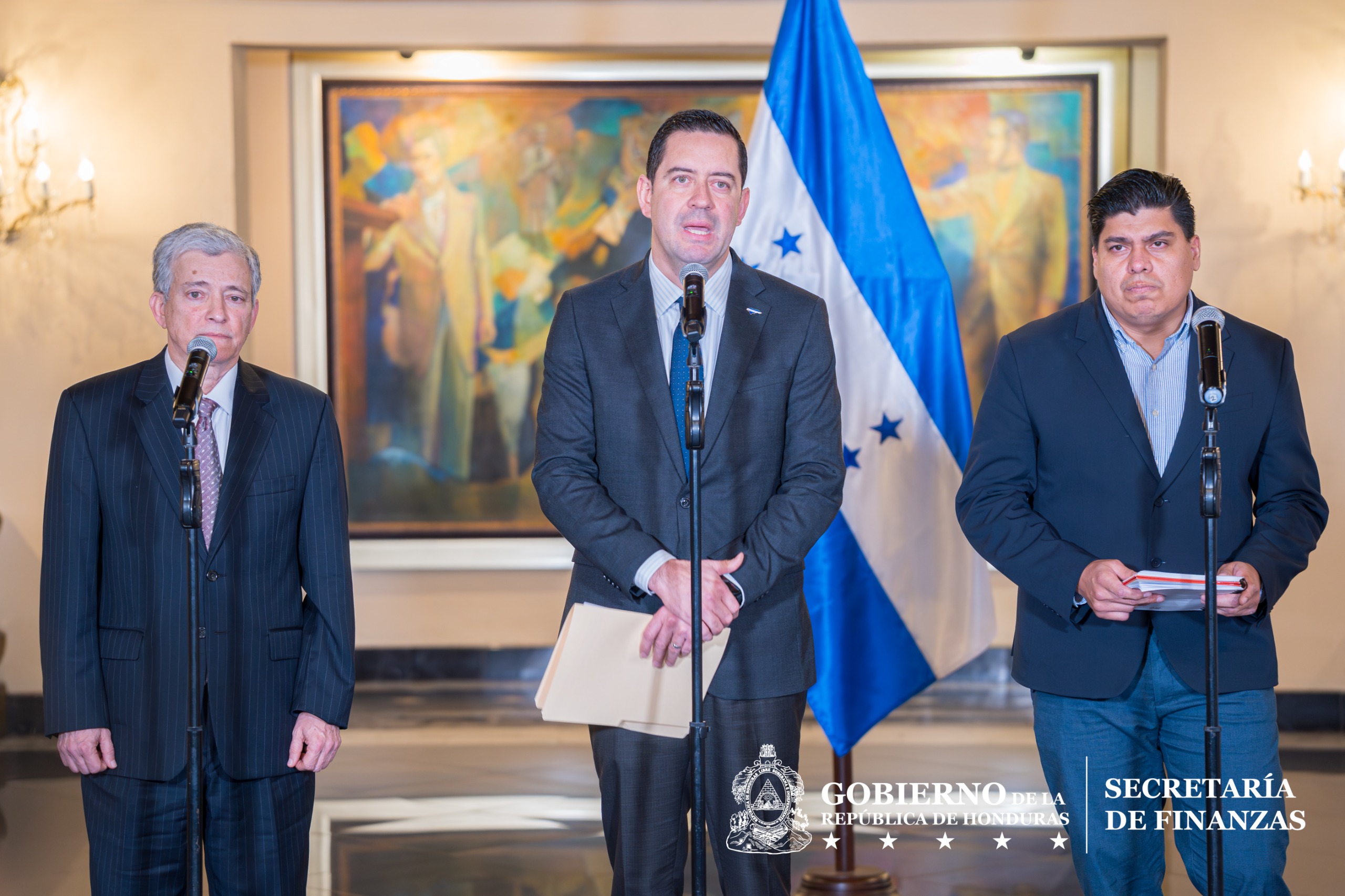 En la comparecencia de prensa en Casa de Gobierno, Hernández Hércules estuvo acompañado por el presidente del Banco Central de Honduras (BCH), Roberto Lagos, y el