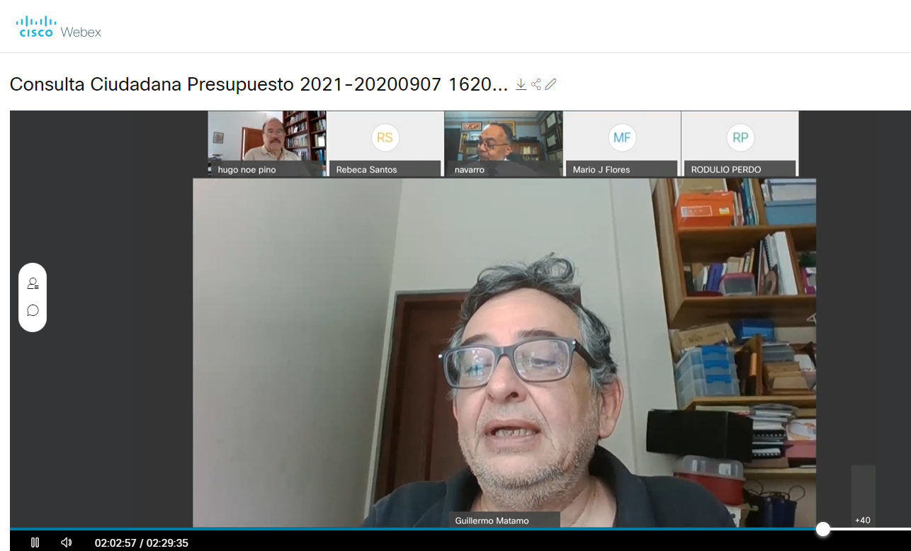 Extracto de la Intervención de Guillermo Matamoros: Enfatizó que los objetivos intrínsecos del presupuesto deben velar por la calidad del gasto. Además, debiendo ser el presupuesto lo suficientemente flexible sin adherirse a la ortodoxia de la Ley de Responsabilidad Fiscal. |