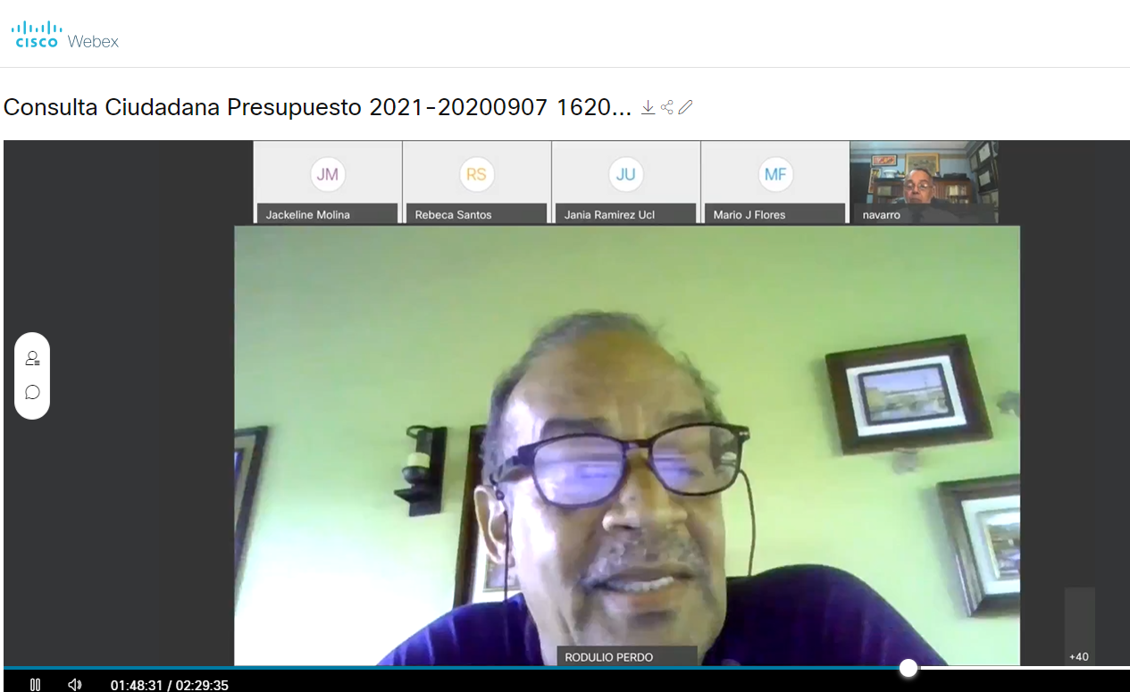 Extracto de la Intervención de Rodulio Perdomo: Es necesario hacer explícito los supuestos en que se basan las proyecciones y en como se formula el presupuesto. Las asignaciones de presupuesto deben de contrarrestar los efectos negativos que produce la pandemia en el bienestar de la población. |