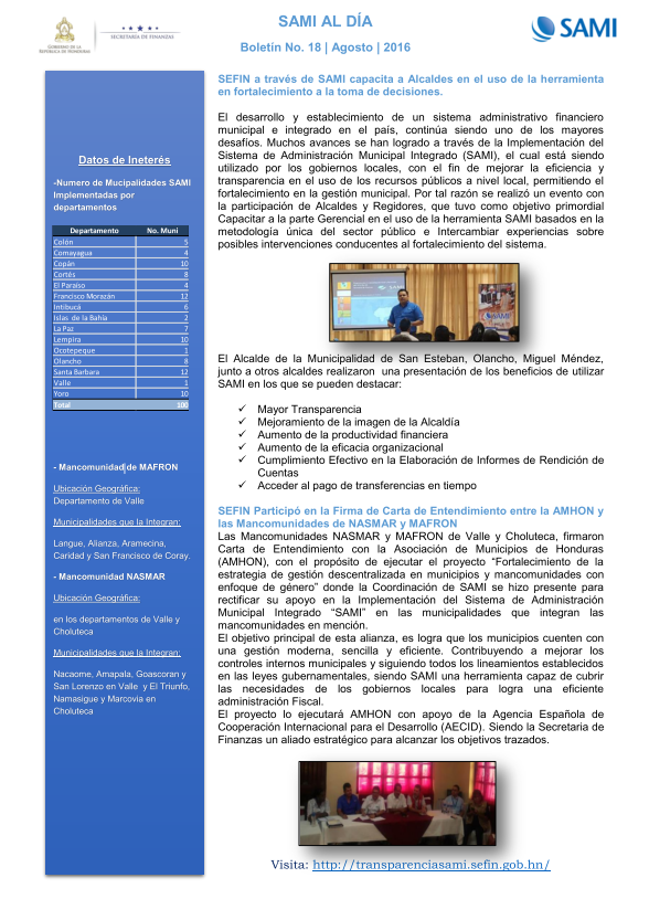 En el plano de gestión municipal el Gobierno de Honduras ha realizado varios esfuerzos aislados para fortalecer la gestión de los municipios. Sin embargo, continúa siendo uno de los mayores desafíos y una tarea pendiente...